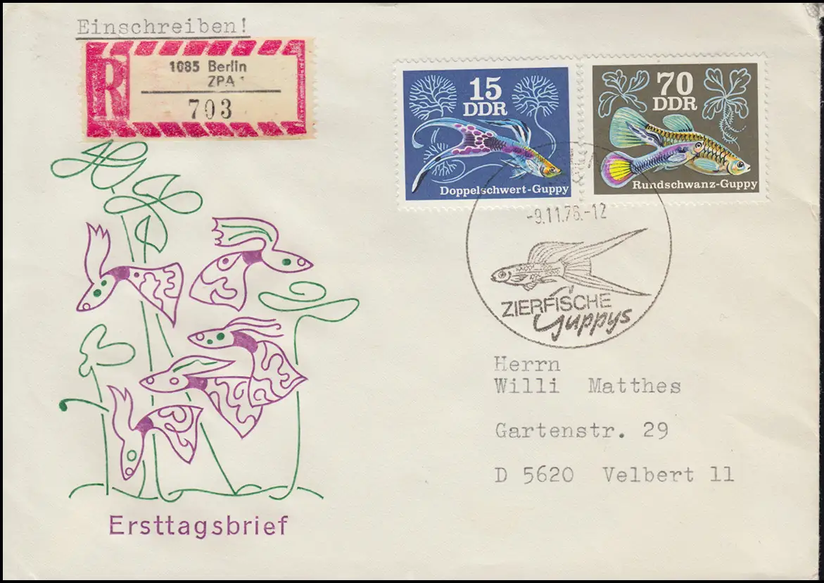 DDR 2177+2181 Zierfische 15+70 Pf. MiF Schmuck-R-FDC mit ESSt BERLIN 9.11.1976
