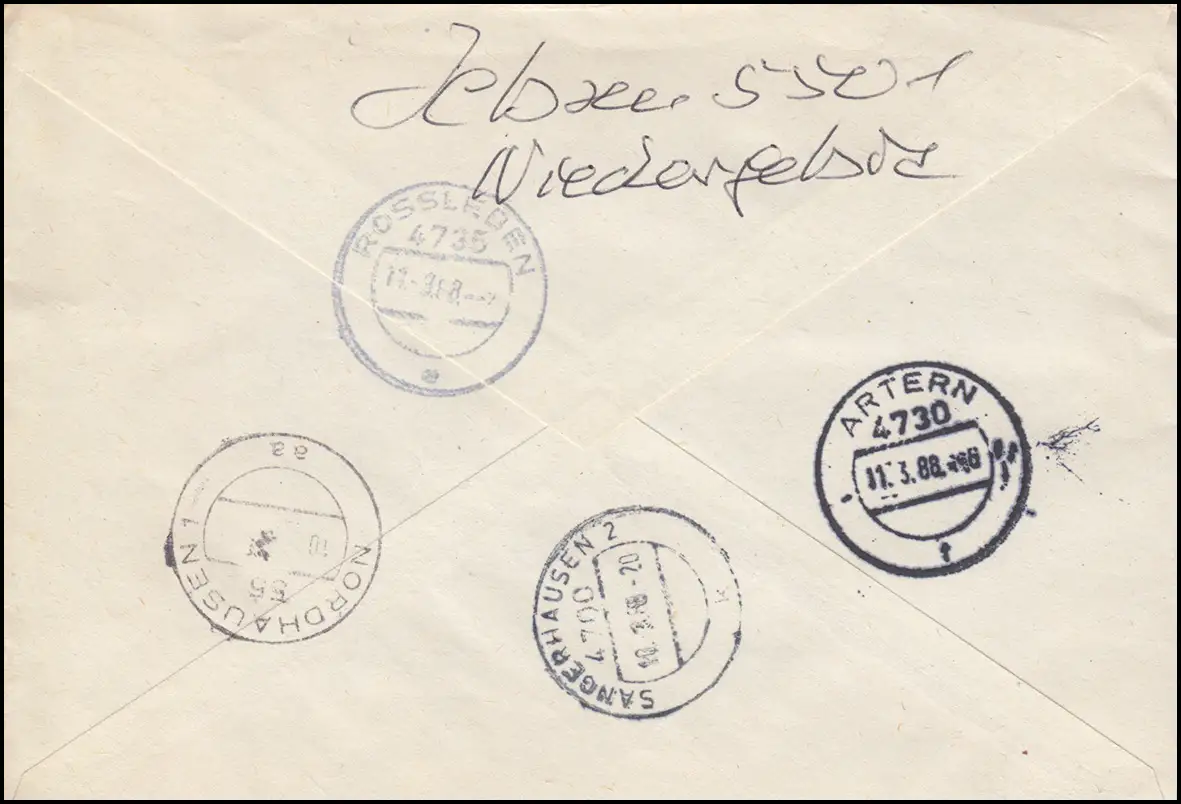 DDR 3139 Weihnachtspyramide 85 Pf auf Eil-Brief, NORDHAUSEN 10.3.88 n. ROSSLEBEN