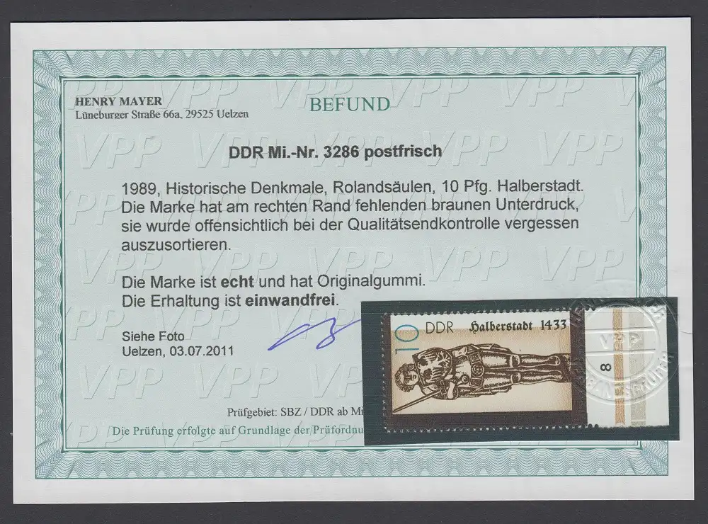 DDR 3286 F II Fehldruck Druck verschoben postfrisch Unterrand ** mit Befund (5448)