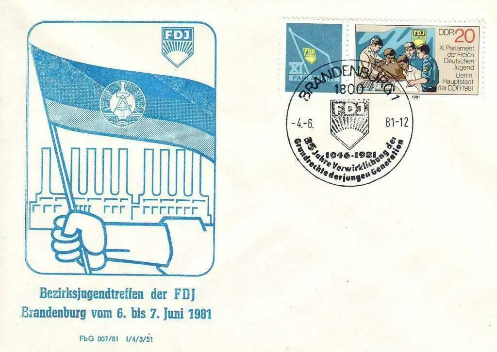 • MichSeite DDR: 06.06.1981, "Bezirksjugendtreffen der FDJ", Ganzstück (Umschlag), MiNr. 2610 als Zusammendruck (W Zd 495), Sonderstempel Beschreibung Briefmarken-Sammler-Verein Brandenburgia e. V.: