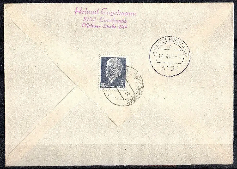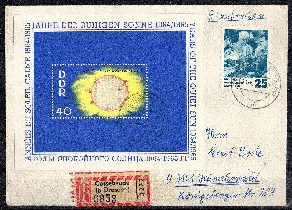 DDR Block 21, Einschreiben gestempelt, Jahr der ruhigen Sonne.