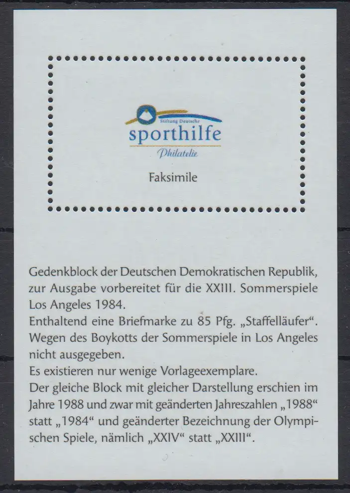 DDR Block I Olympia-Block 1984 nicht ausgegeben Nachdruck Faksimile (5465C)