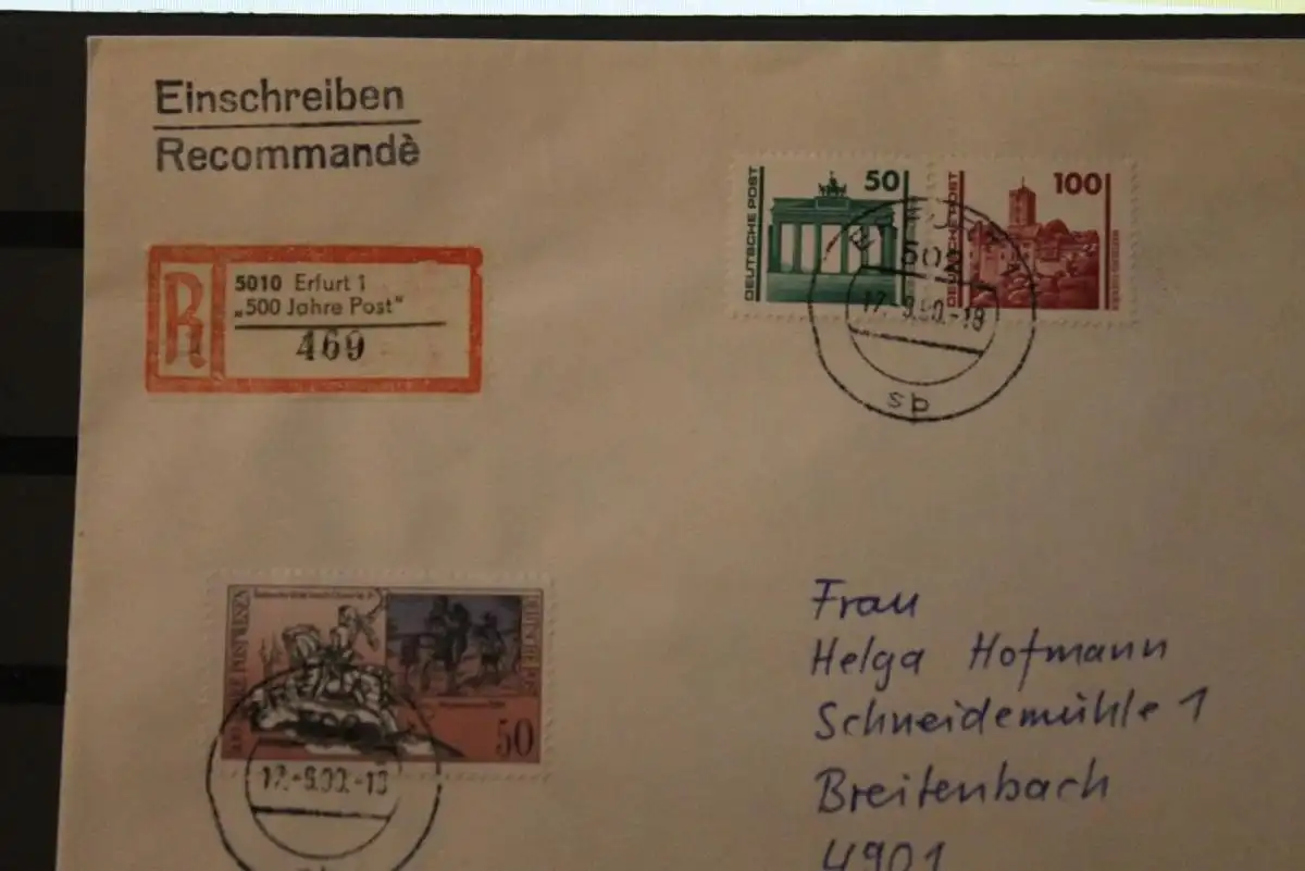 DDR; Erfurt; 500 Jahre Post, Sonder R-Zettel