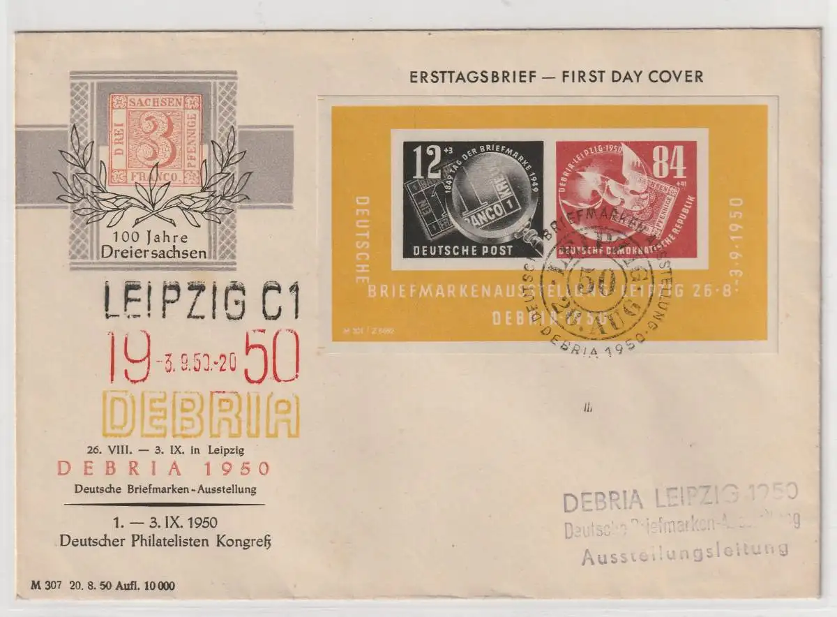 DDR-FDC: DEBRIA-Block, Sonderstempel, geprüft Mayer