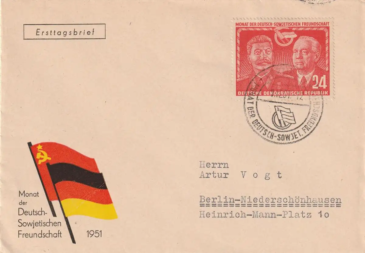 DDR-FDC: Monat der DSF (Stalin / Pieck) 24 Pfg.
