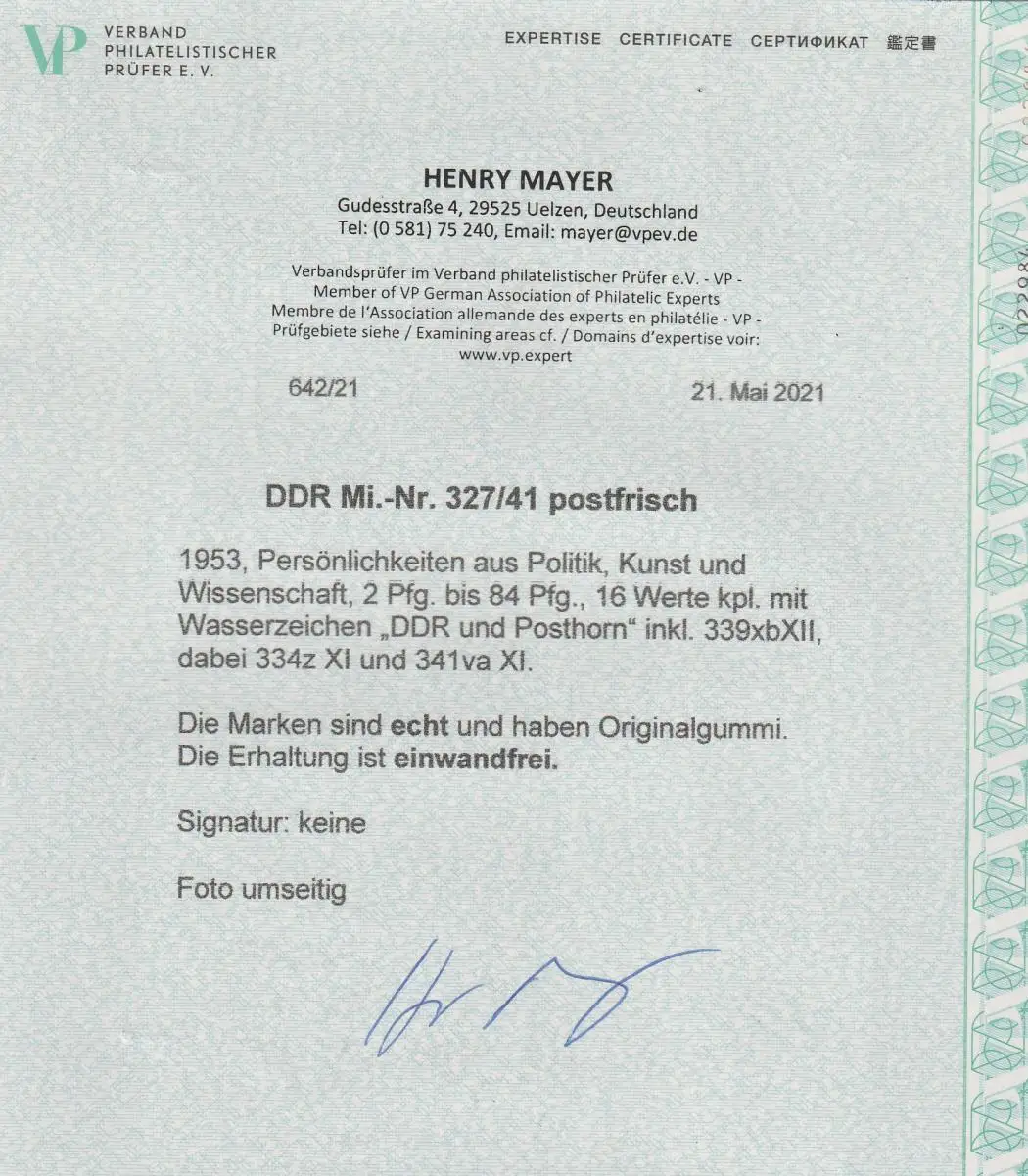 Die Erhaltung ist einwandfrei, s. Attest. Dabei die bessere Variante 341va XI. Michelwert 480,00 €