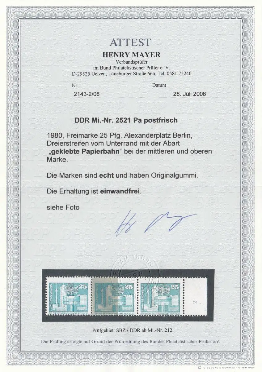 DDR: MiNr. 2521 pa, ** Geklebte Papierbahn