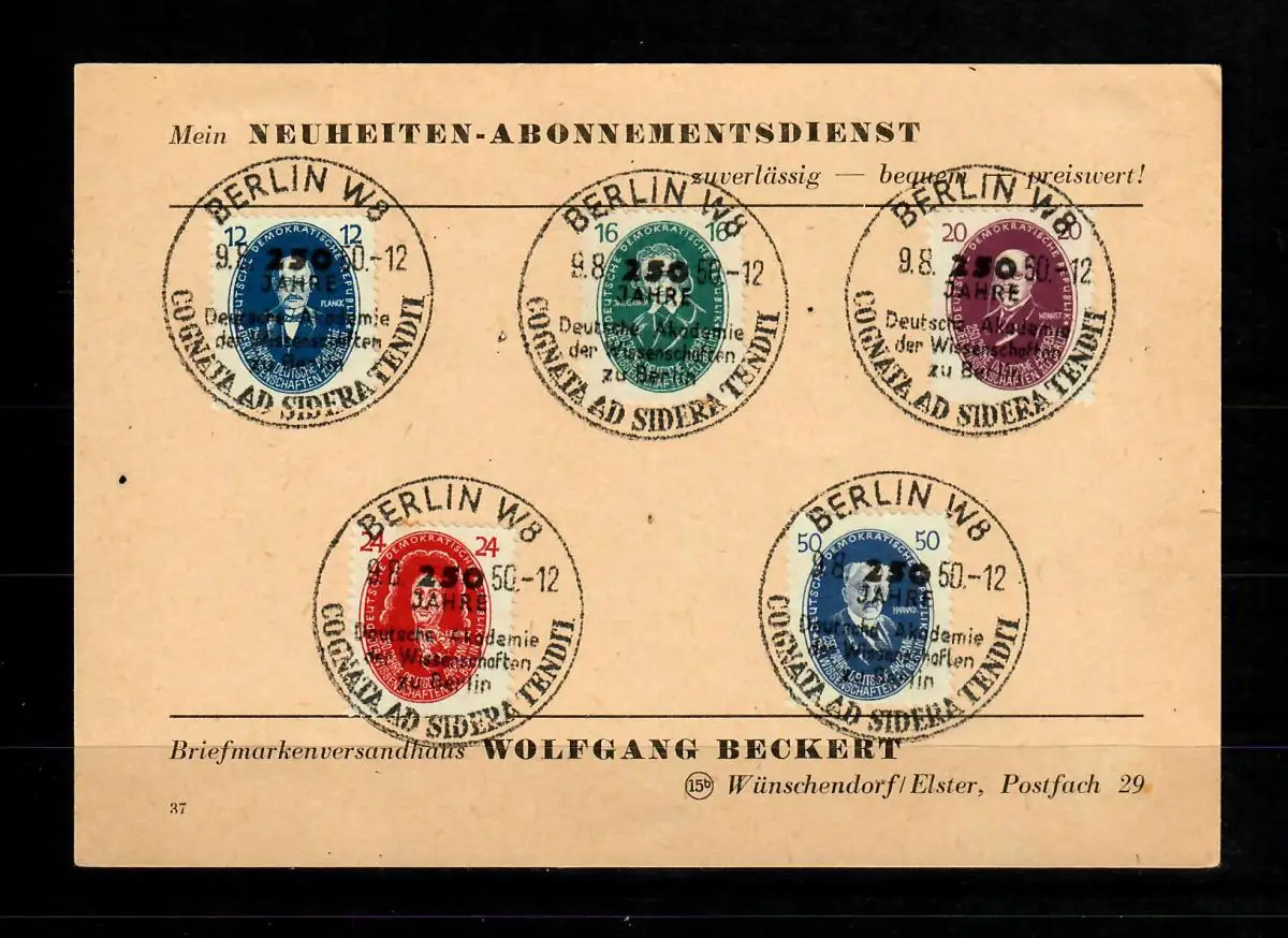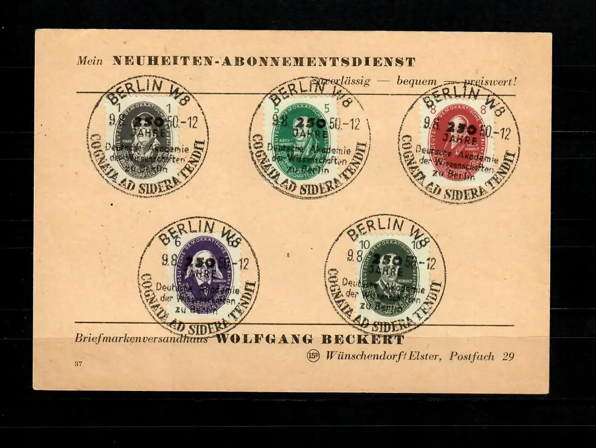 DDR MiNr. 261-270, Luxus Stempel Berlin 1950 auf Karten