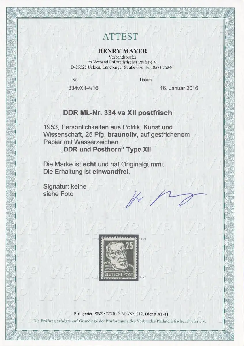 DDR: MiNr. 334 vaXII, postfrisch, **