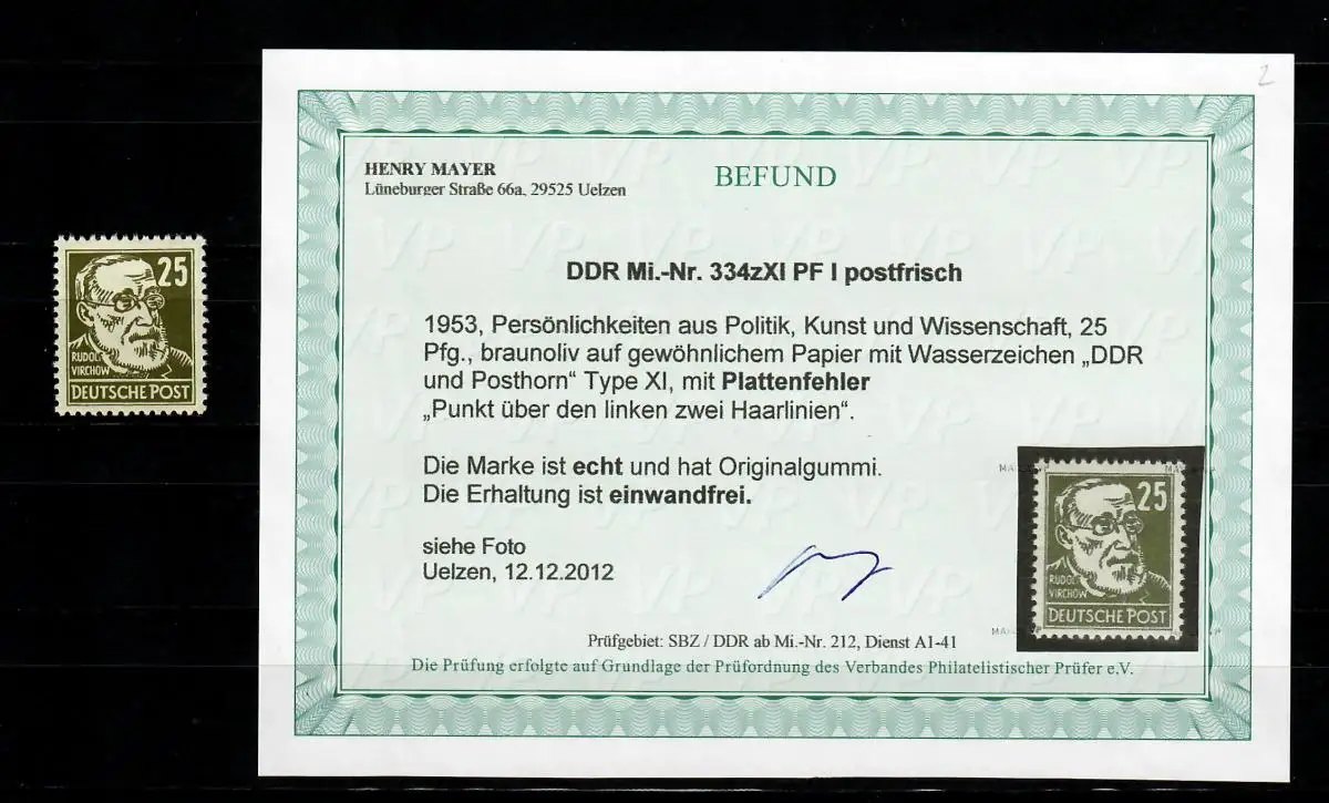 DDR MiNr. 334xXI PF I, postfrisch, **, Plattenfehler