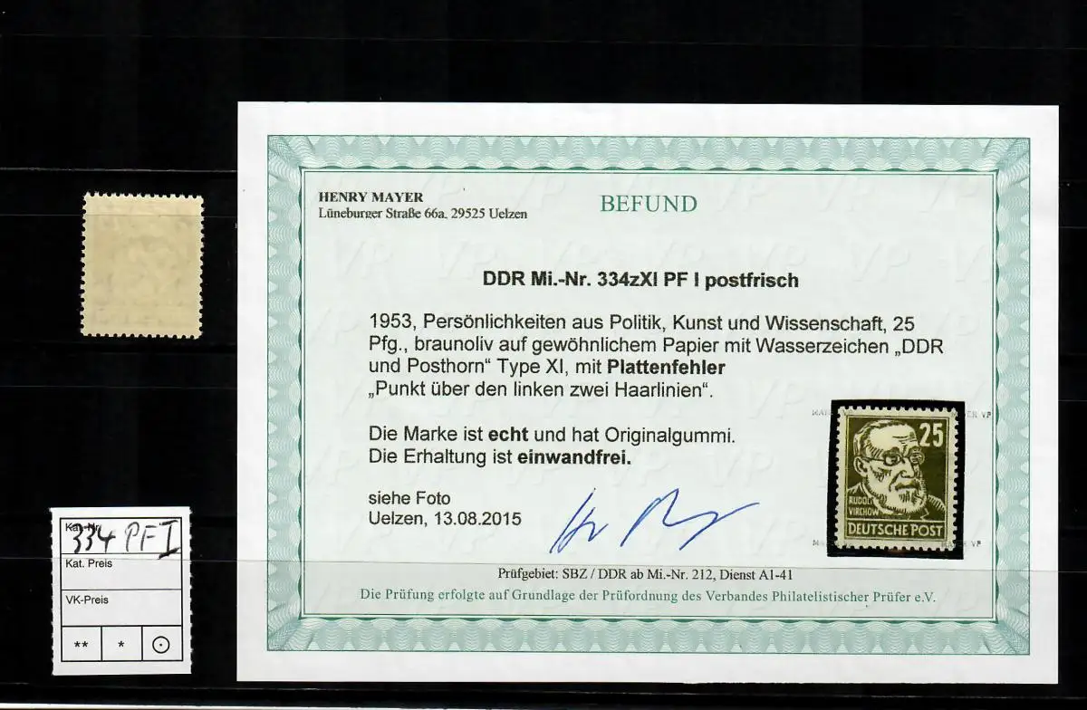 DDR MiNr. 334zXI, Plattenfehler I, postfrisch, **