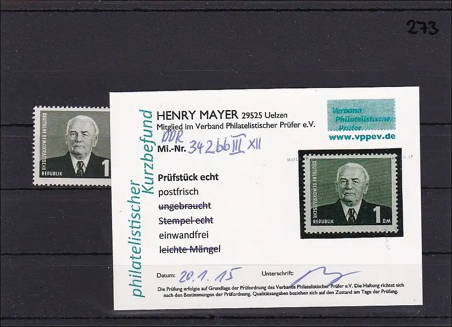 DDR MiNr. 342 bb III XII, ** postfrisch, mit Befund