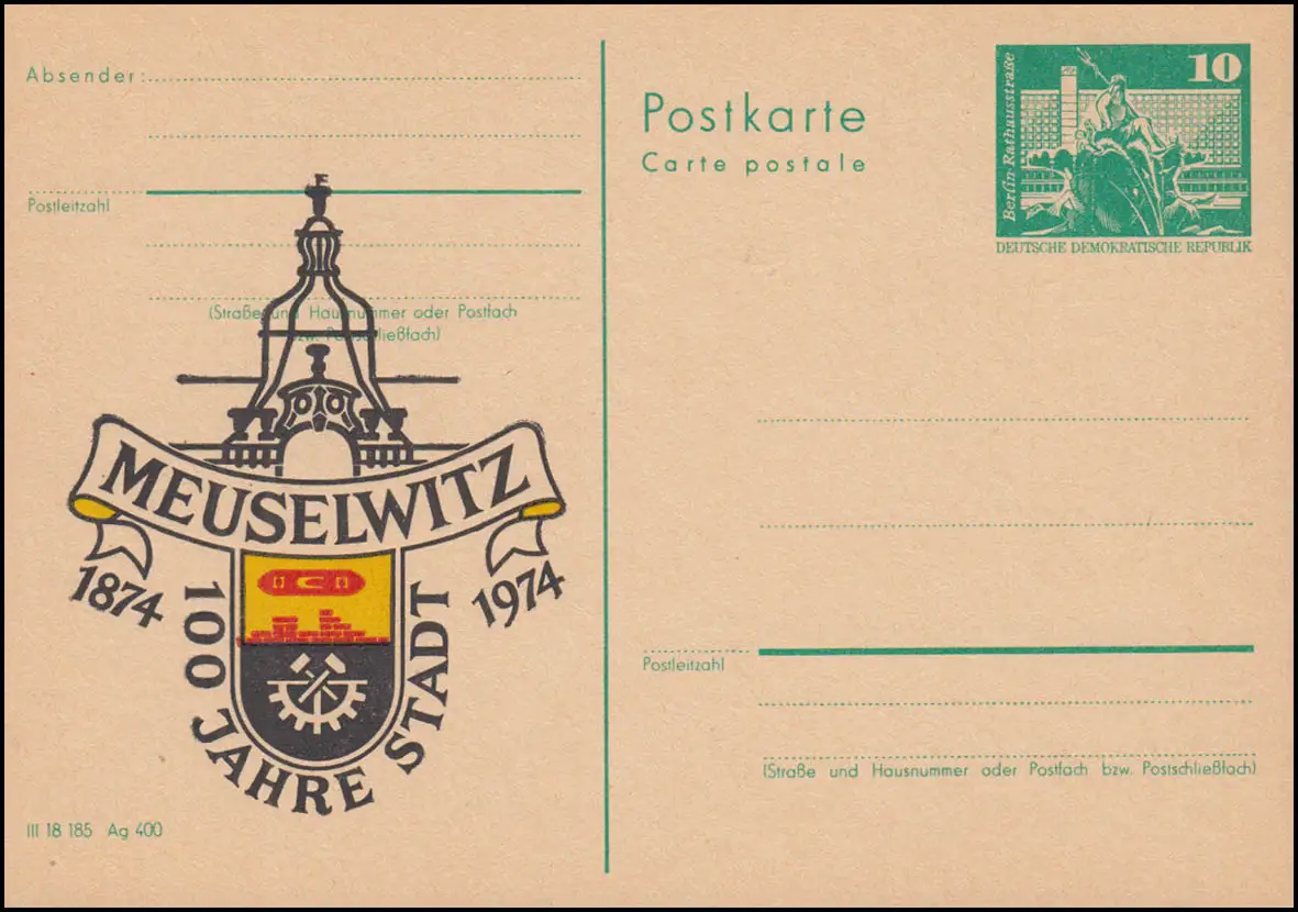 DDR P 79 100 Jahre Stadt Meuselwitz 1874-1974, **