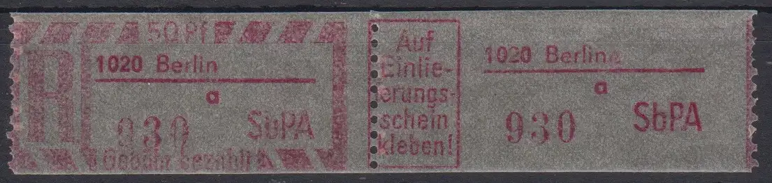 DDR SbPÄ 2 F **Z 1020 Berlin a Einschreibemarken postfrisch ** (8995A)