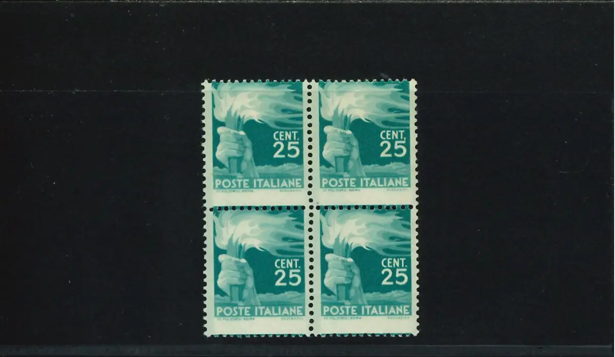 MNH - Vollgummi - DEMOCRATICA 25 CENT. STARK VERSCHOBENE SPITZE IN VERTIKALER RICHTUNG VIERTEL - Kat. euro 540 Cod. ITAV_0935