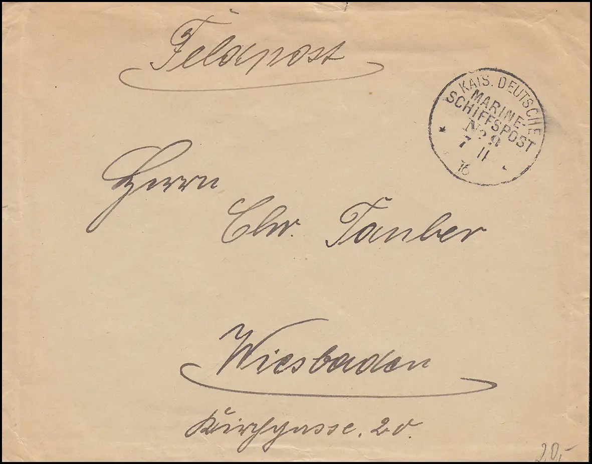 DEUTSCHE MARINE-SCHIFFSPOST No 9 - 7.11.1916 SMS Deutschland als Feldpostbrief
