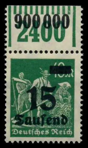 15 Tsd auf 40 Mark Wert aus der Aufdruckausgabe, Ziffern im Rechteck, Arbeiter und Ziffern im Kreis