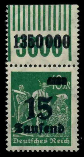 15 Tsd auf 40 Mark Wert aus der Aufdruckausgabe, Ziffern im Rechteck, Arbeiter und Ziffern im Kreis