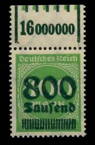 800 Tsd auf 400 Mark Wert aus der Aufdruckausgabe, Ziffern im Rechteck und Ziffern im Kreis, grün