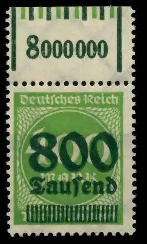 800 Tsd auf 400 Mark Wert aus der Aufdruckausgabe, Ziffern im Rechteck und Ziffern im Kreis, grün