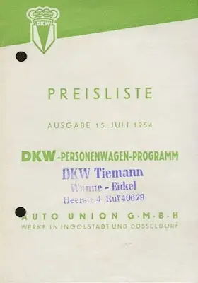 DKW Preisliste 7.1954