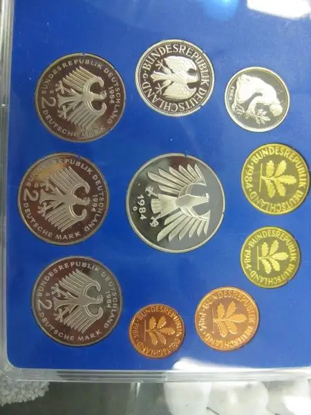DM Kursmünzensatz, 1984, Münzstätte Karlsruhe, G, Polierte Platte, Proof, Spiegelglanz, PP