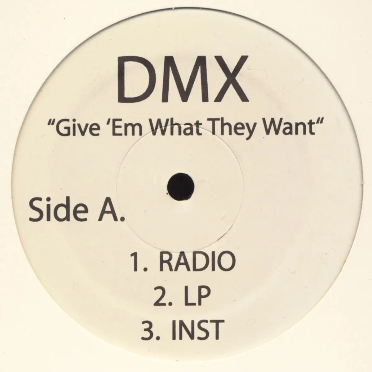 12" Maxi DMX - Give 'em What They Want, Promo, neutrales Cover, Zustand Platte VG+; Made in United States 2005 Def Jam PYF-DMX, Tracks Radio, LP, Inst, Pump Ya Fist [Radio], Pump Ya Fist [LP], Pump Ya Fist [Inst]
