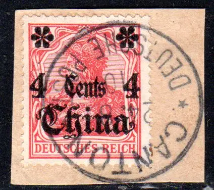 DP China, 4 C./10 Pf. auf schönem Briefstück m. Stpl. CANTON