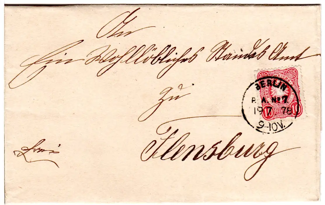 DR 1878, K1 BERLIN P.A.No.7 (Kuphal 100.-) klar auf Brief m. 10 Pfge.