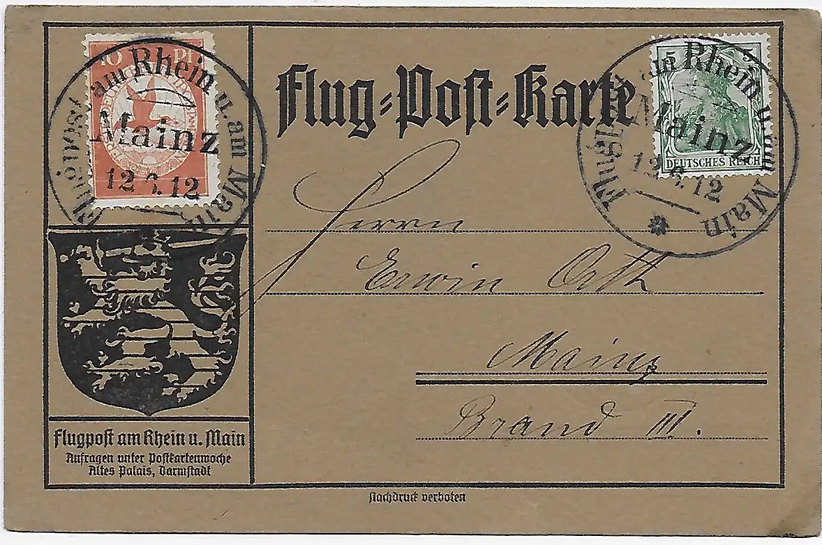 DR: 1912: Flupost am Rhein und am Main, Mainz