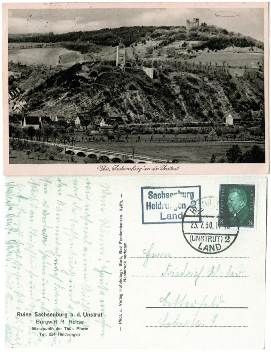DR 1930, Landpoststpl. SACHSENBURG Heldrungen 2 Land auf sw-AK m. 8 Pf