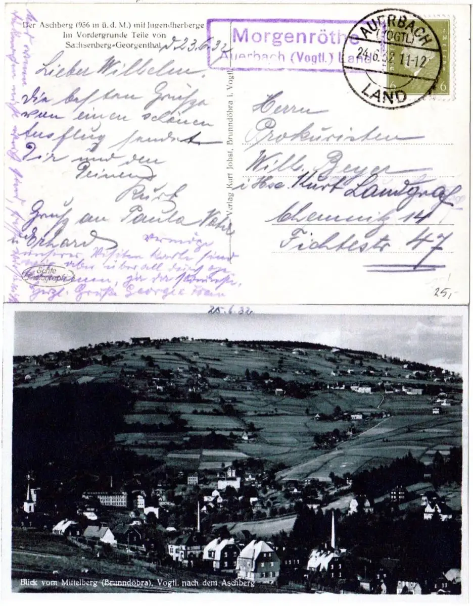 DR 1932, MORGENRÖTHE Auerbach (Vogtl.) Land, Landpost Stpl. auf AK m. 6 Pf.