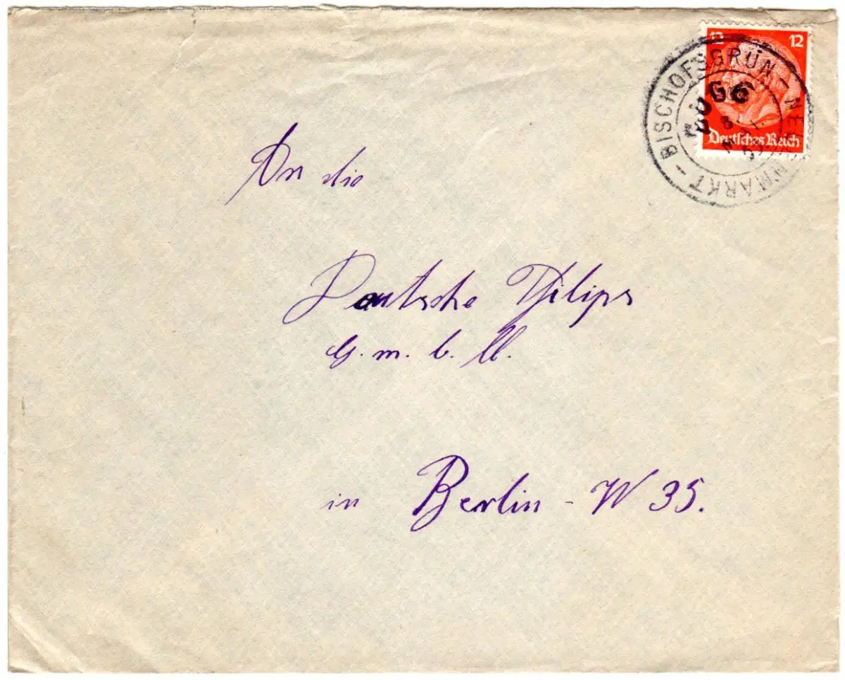 DR 1933, Bahnpost-K2 BISCHOFSGRÜN-NEUENMARKT auf Brief m. 12 Pf.