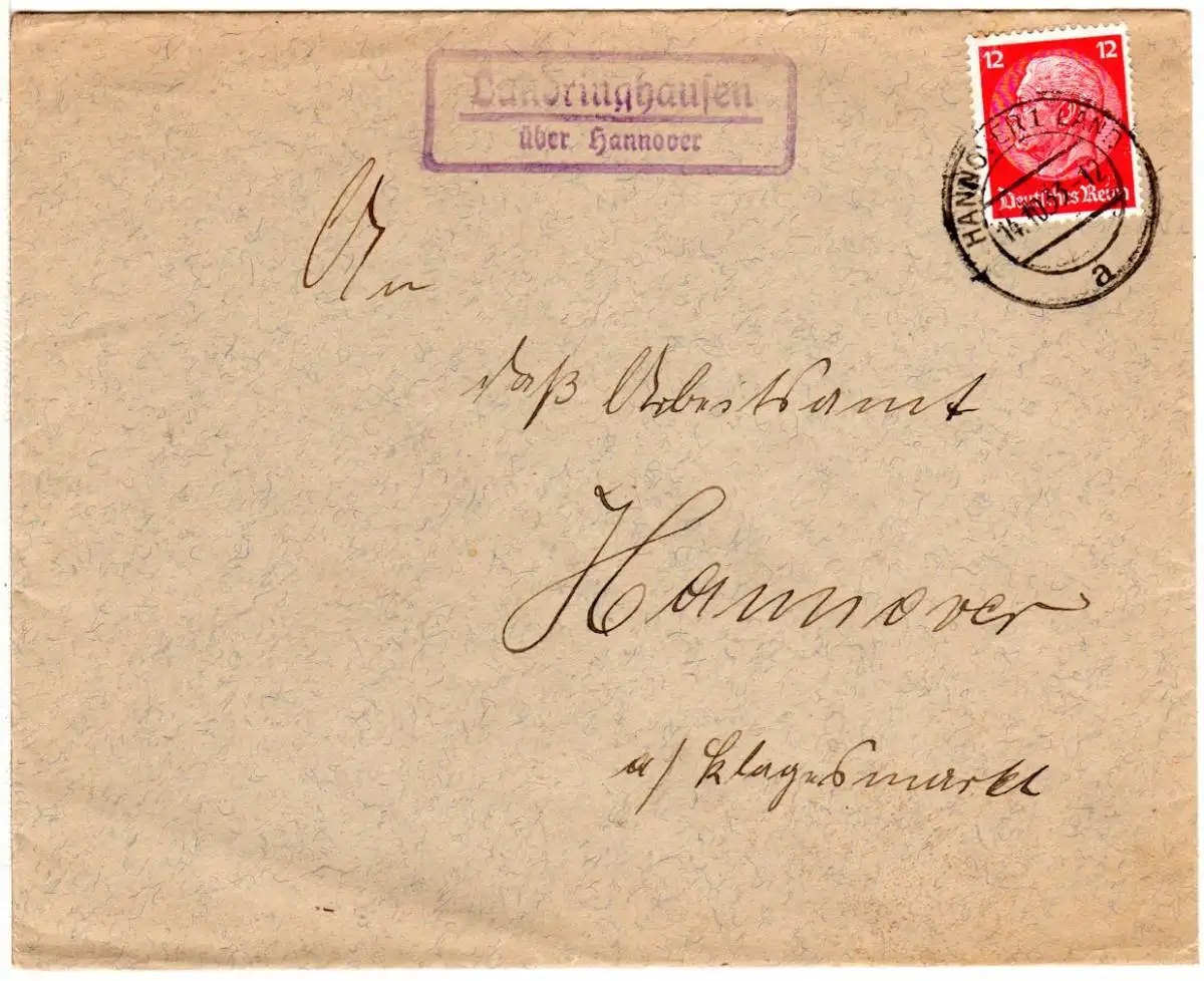 DR 1933, Landpost Stpl. LANDRINGHAUSEN über Hannover auf Brief m. 12 Pf.