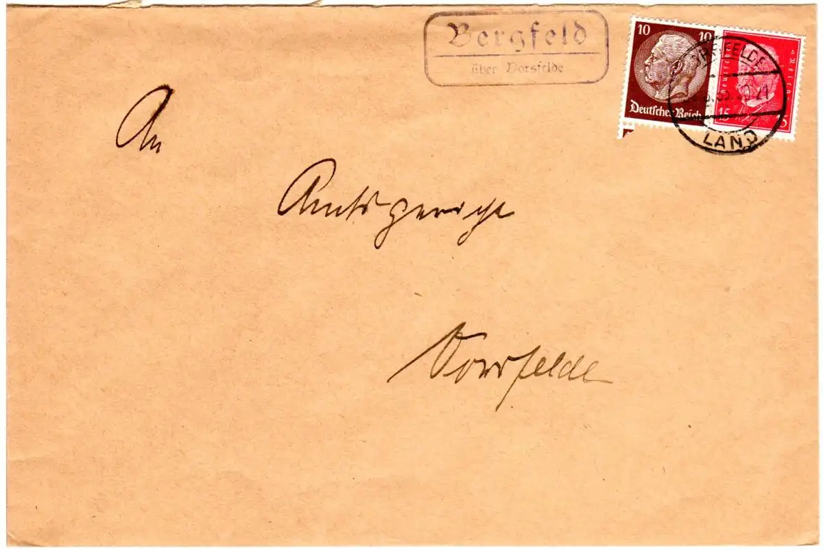 DR 1933, Landpoststpl. BERGFELD über Vorsfelde auf Brief m. 10+15 Pf.