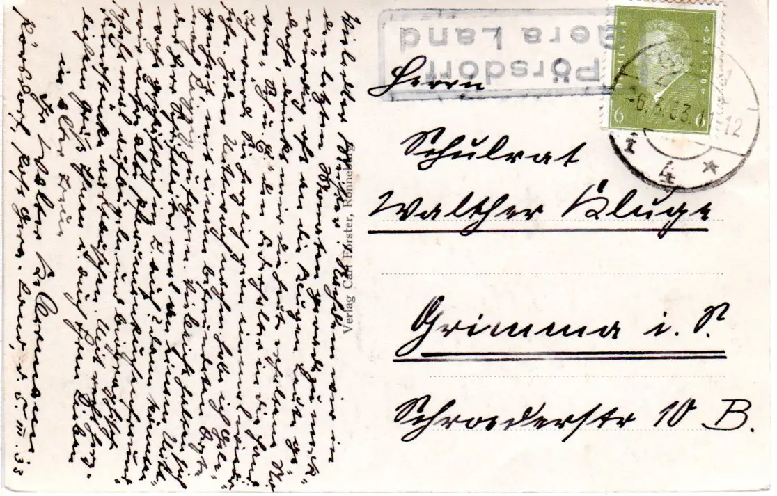 DR 1933, PÖRSDORF Gera Land, Landpost Stpl. auf AK m. 6 Pfg.