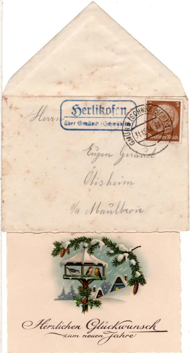 DR 1934, Landpost Stpl. HERLIKOFEN über Gmünd auf kl. Brief m. 3 Pf.