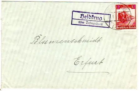 DR 1935, Landpost Stpl. HEIDKRUG über Delmenhorst auf Brief m. 12 Pfg.