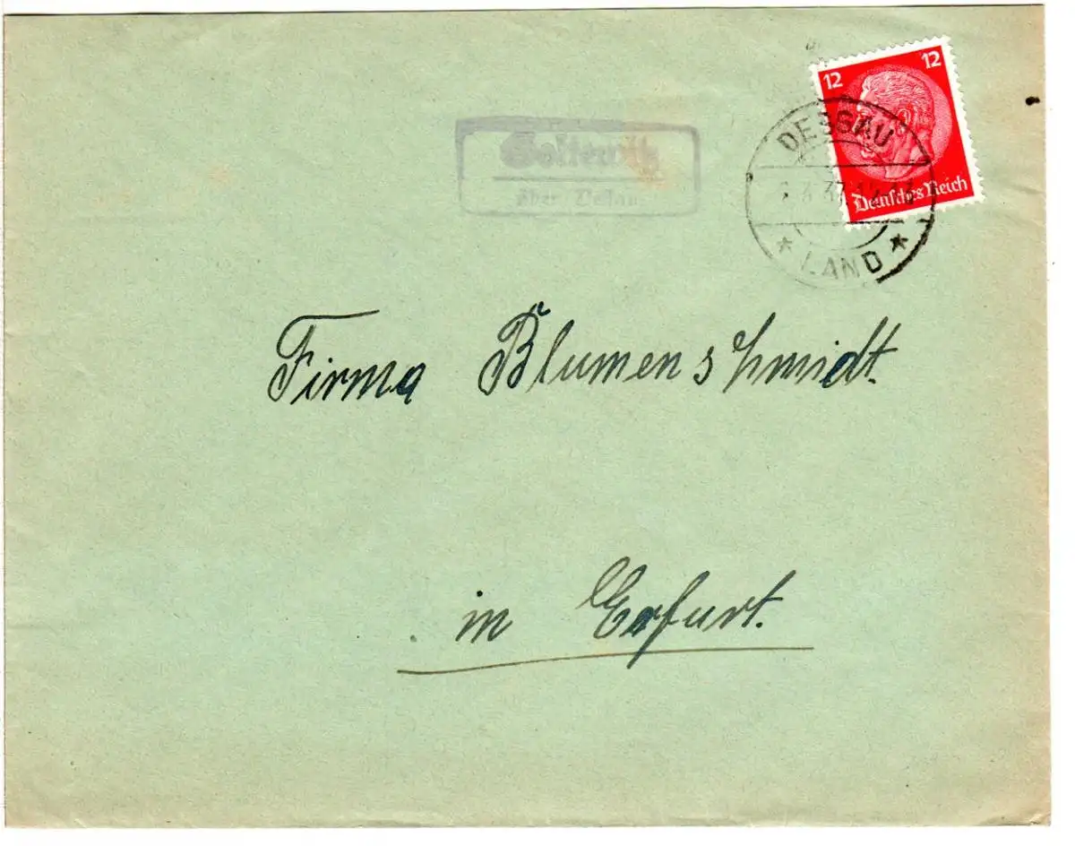 DR 1936, Landpost Stpl. GOLTEWITZ über Dessau auf Brief m. 12 Pf.