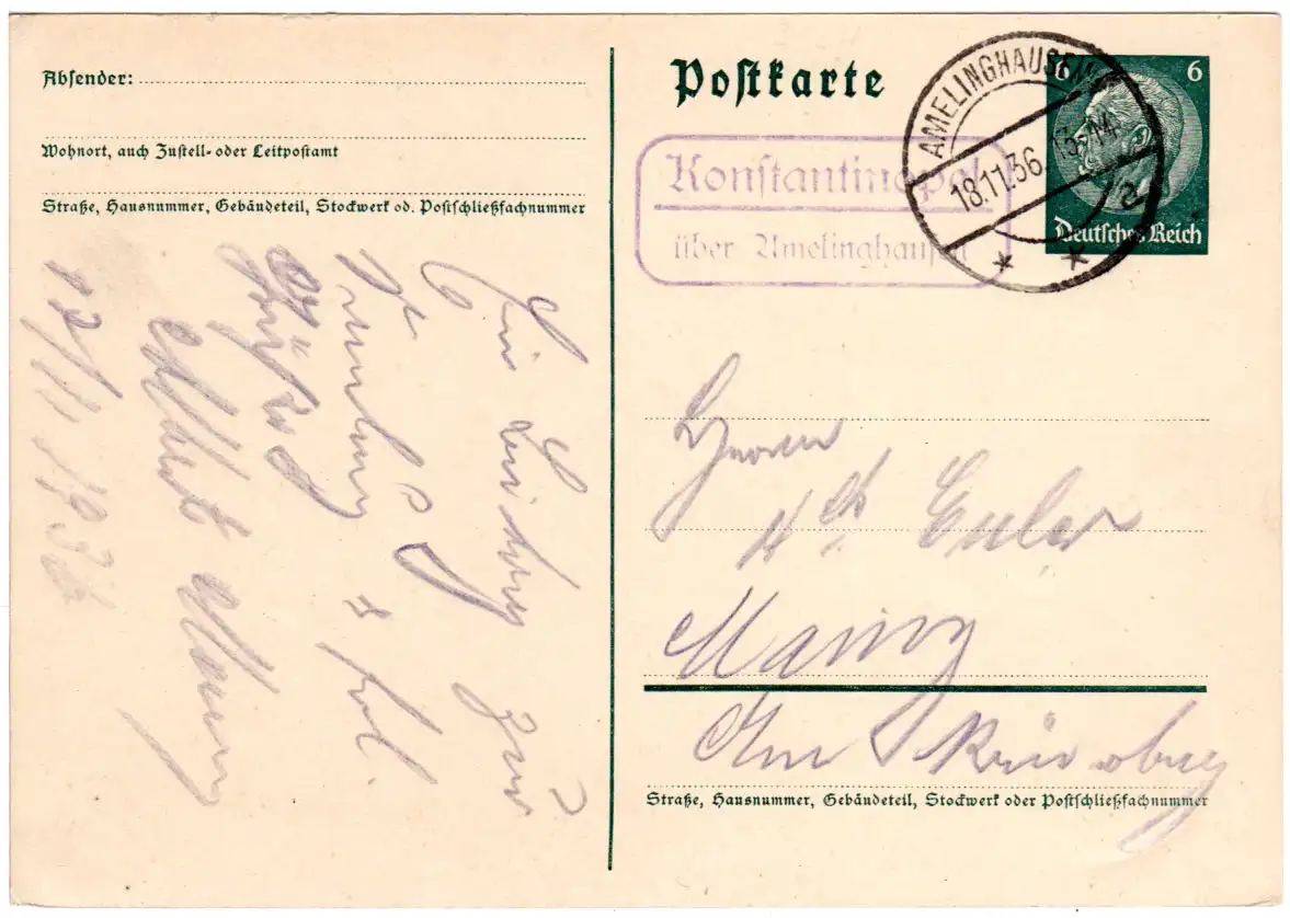 DR 1936, Landpost Stpl. KONSTANTINOPEL über Amelinghausen auf 6 Pf. Ganzsache.