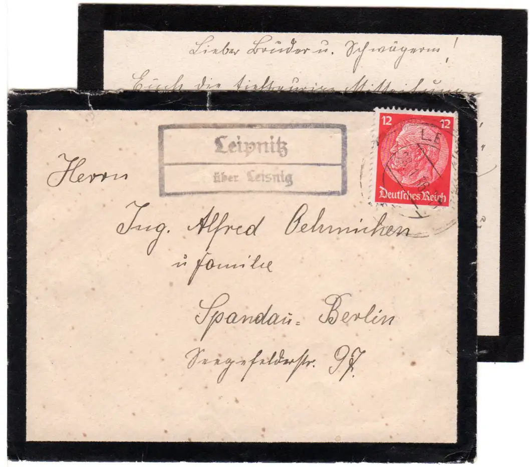 DR 1936, Landpost Stpl. LEIPNITZ über Leisnig auf Trauer-Brief m. Inhalt