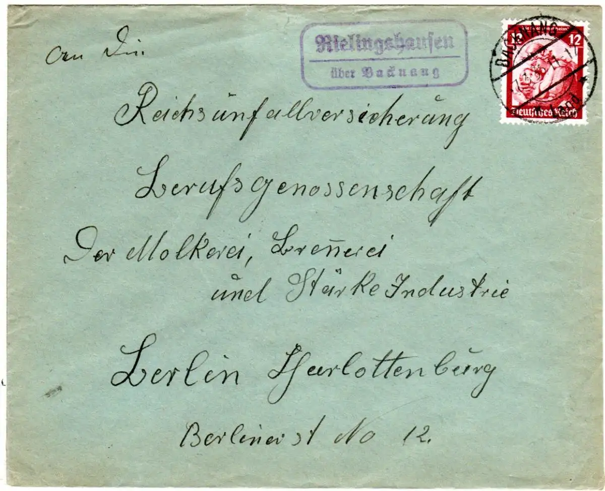 DR 1936, Landpost Stpl. RIELINGSHAUSEN über Backnang auf Brief m. 12 Pf.