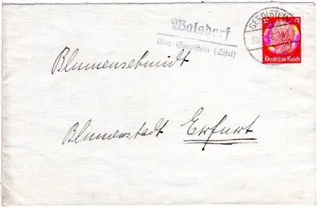 DR 1936, Landpost Stpl. WALSDORF über Gerolstein (Eifel) auf Brief m. 12 Pf.