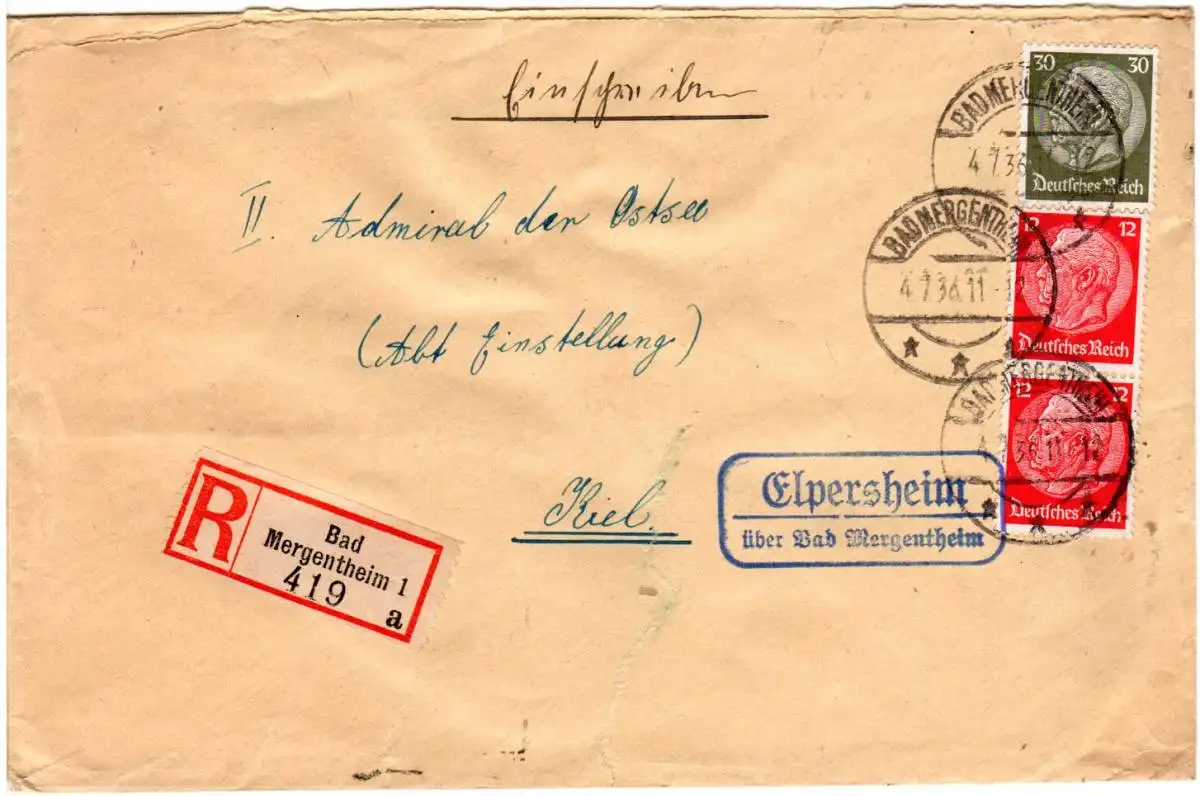 DR 1936, Landpoststpl. ELPERSHEIM über Bad Mergentheim auf Einschreiben Brief