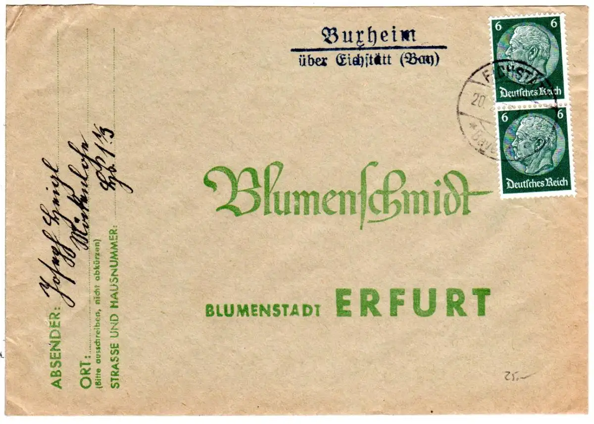 DR 1937, Landpost Stpl. BUXHEIM über Eichstätt auf Brief m. 2x6 Pf.