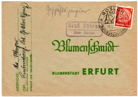 DR 1937, Landpost Stpl. GROSS DÖHREN über Goslar auf Brief m. 8 Pf.