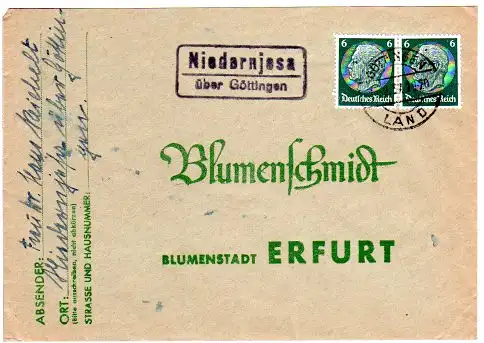DR 1937, Landpost Stpl. NIEDERNJESA über Göttingen auf Brief m. 2x6 Pf.