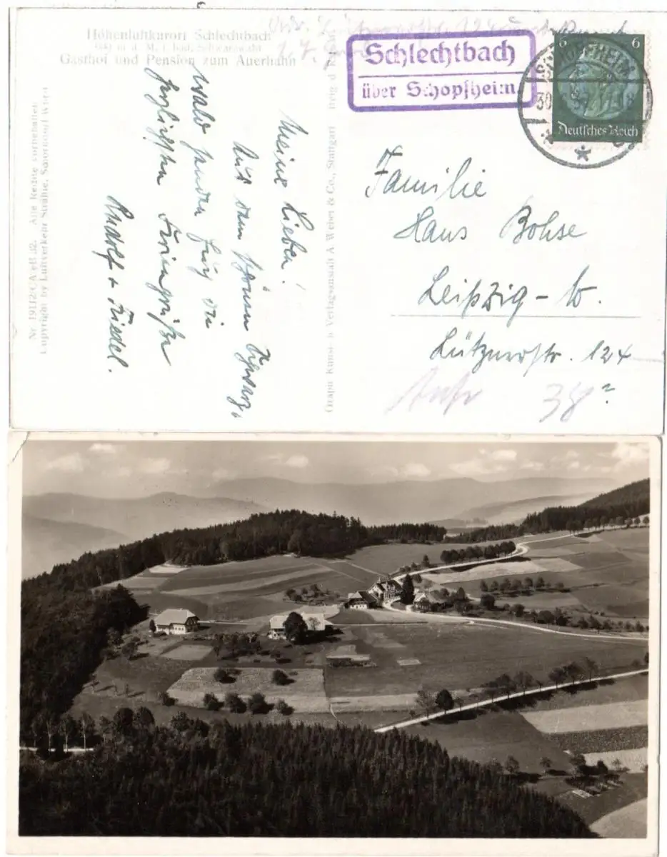 DR 1937, Landpost Stpl. SCHLECHTBACH über Schopfheim auf sw-AK m. 6 Pf.