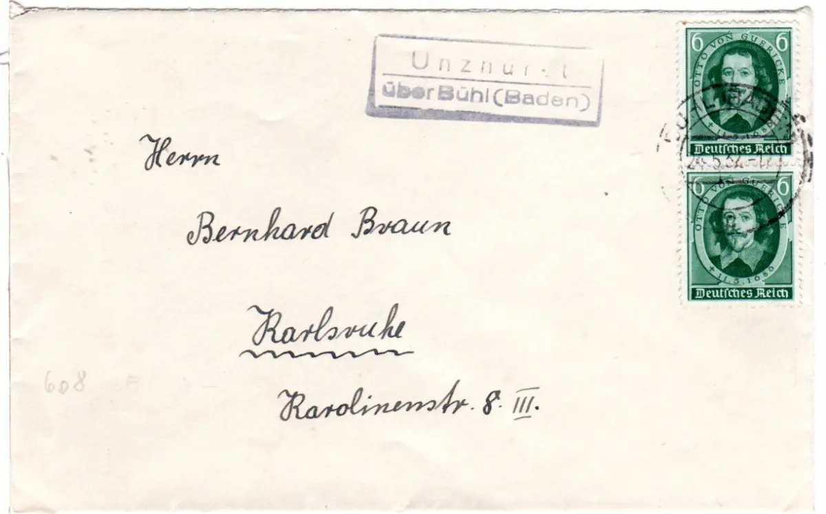DR 1937, Landpost Stpl. UNZHURST über Bühl (Baden) auf Brief m. 2x6 Pf.
