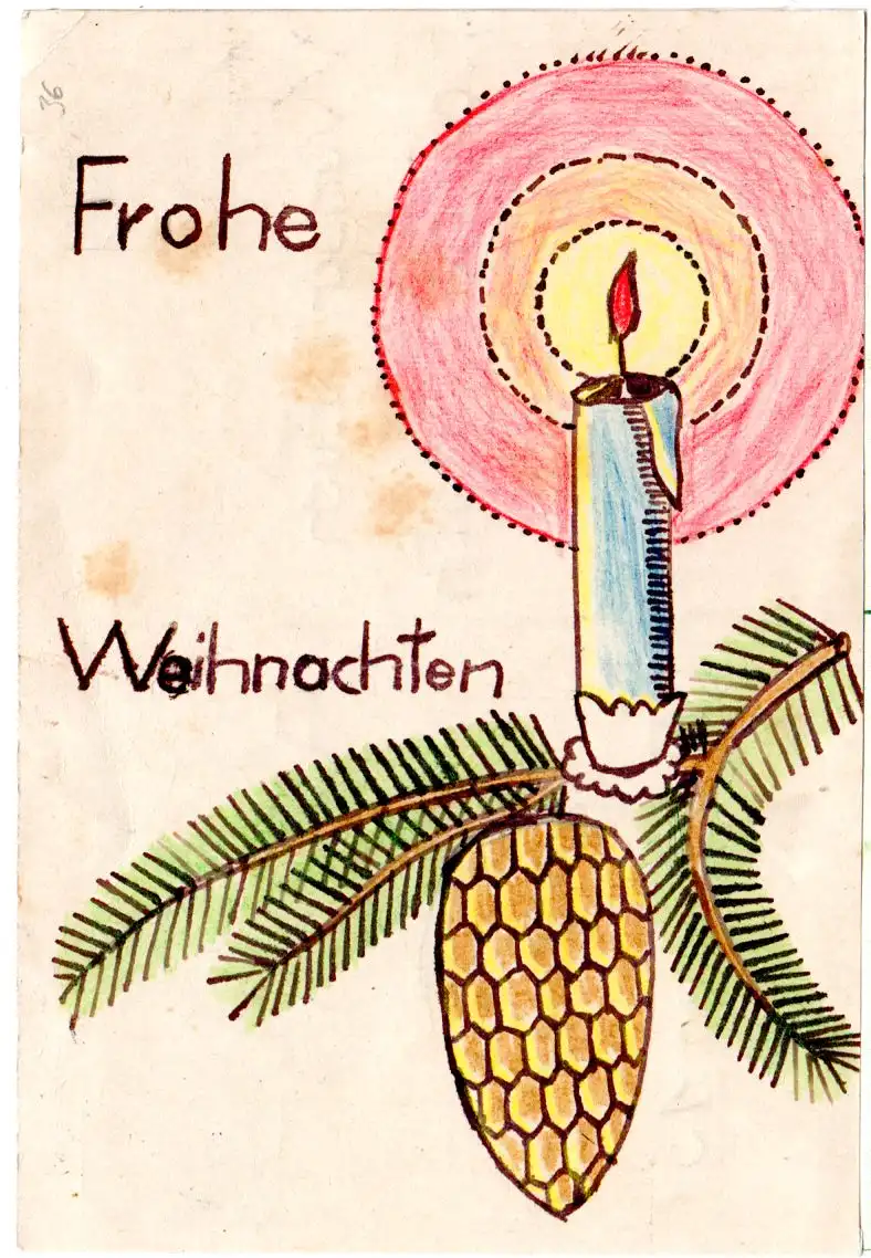 Landpoststellen-II Stempel auf handgemalter Frohe Weihnachten -Karte nach Bolzhausen. Ortsteil der Gemeinde Gaukönigshofen